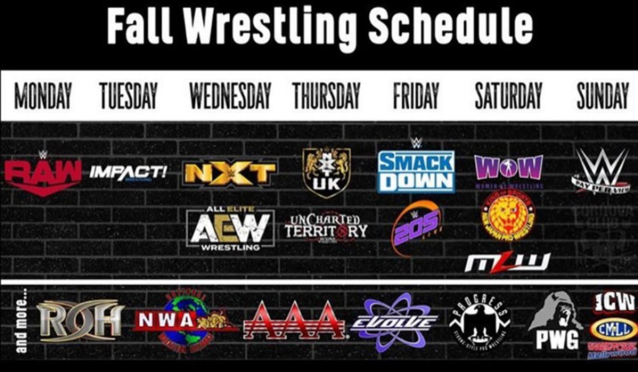 There are other smaller independent promotions with shows across cable, YouTube, and syndication. Plus there’s a pay per view on Sunday!