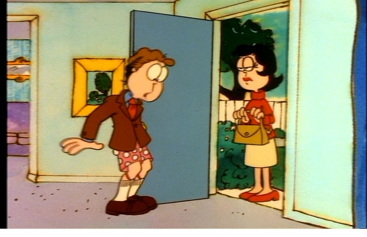 The next day at home Jon asks Garfield for help picking out an outfit. He’s excited but nervous for this date. Not only a first date but also his first time attempting to make Thanksgiving dinner. As someone who had to make two (two turkeys, not two dates. Well, that’s another story.) in the span of 24 hours I can tell you its not easy at all and adding in impressing a woman would have made that ordeal unbearable. Jon gets some help along the way (more on that in a bit) but first he does believe the clothes make the man. He wants Liz to fall in love with him. To see his home, the meal, the lifestyle, and attach herself to his wagon as it reaches the stars. What better way to impress a woman than to answer the door… without pants.