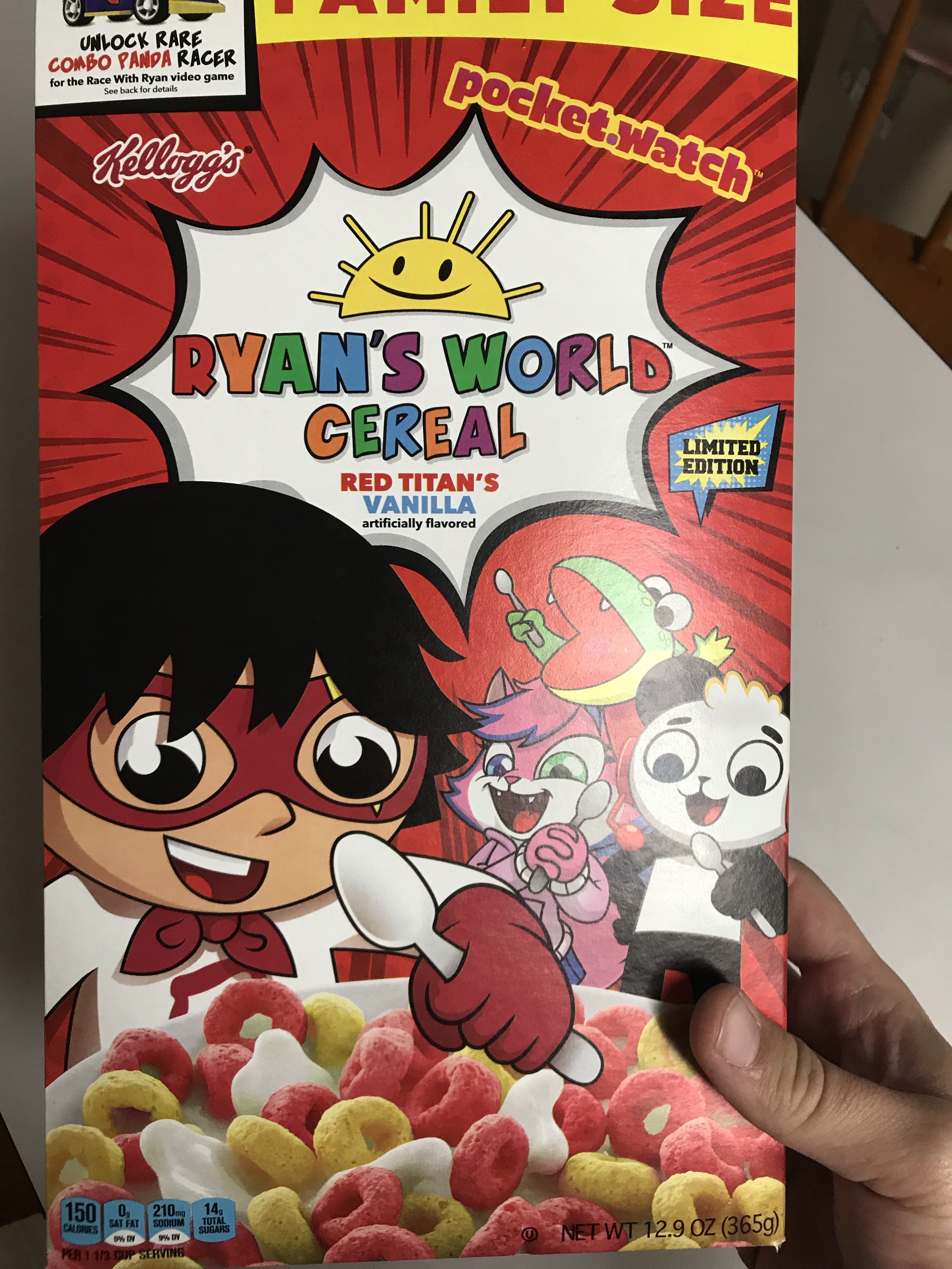 As a father of a six year old, Ryan has infiltrated our house as well. While not the rock star he was a year ago, we’ve added to his millions of YouTube videos. There is also a dedicated storage tote to his variety of blind box and bag themed toys on a shelf in Bear’s bedroom. Never one to shy away from all that is capitalism, we invited this boy over for breakfast. Presenting, Ryan’s World cereal.