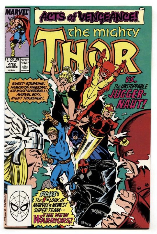 30 years ago I had read Speedball until he was cancelled. I moved on to Avengers and loved West Coast first, then Solo and original Avengers were tied for second. Thus, when the Acts of Vengeance story started I had to read it all. This was a huge Avengers crossover that spilled over into other books. And that worked. I wanted to see more of this story and started buying comics I had never read before. Captain America, Spider-Man, and more featured tie ins to the tale. Even Thor, who I only read once before because there was a Daredevil appearance, had the Acts of Vengeance logo in the corner. A battle between Thor and the Juggernaut took place. Great battle. I’m new to comics and sure that there’s no way Thor wins. Suddenly help comes out of no where. Who are these teen superheroes? I’m new to comics so I have no idea if these are brand new characters to everyone or just to me. OMG, there’s Speedball! Speedball is on this team! What’s happening?! Tune in for the next issue! Every day I looked at magazine racks and spinners for a new issue. I didn’t want to risk missing this. No way I could have. That’s a hell of a cover. The New Warriors help Thor win and at the end there is an editorial announcement to follow this new team in New Warriors #1. Again the waiting game.