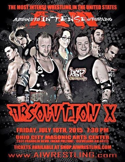Absolute Intense Wrestling Absolution X took place July 10, 2015 in Cleveland. This is listed as a 4 hour show but the first 16 minutes are promos for tonight’s matches. It helped me get up to speed on who was who and what is what. This is the tenth Absolution, thus the X, and putting on ten of anything should be a badge of honor for any indie company.