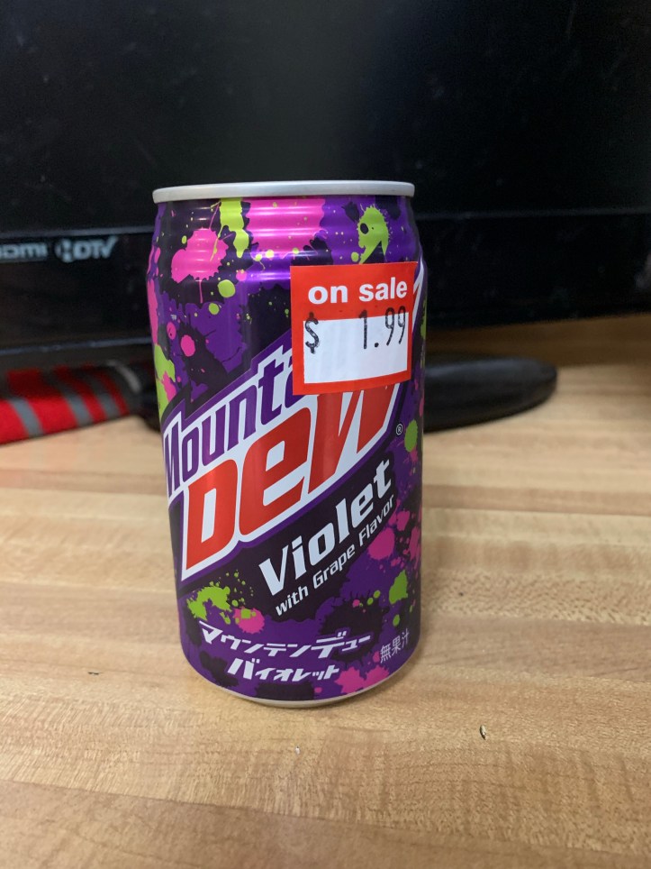 This wasn’t found at the Asian Market I’ve been discussing recently. This one can be found at your local FYE. When I first saw the beverage it was $5 for a 12 ounce can and I said you’re out of your mind. I’m not paying that much to try a new soda. I have never been a big fan of Mountain Dew grape flavors. I try Pitch Black, any version so far, and it takes me about a week to sip through a bottle. Grape isn’t a go to flavor for me. And, to be honest, white grape is better.