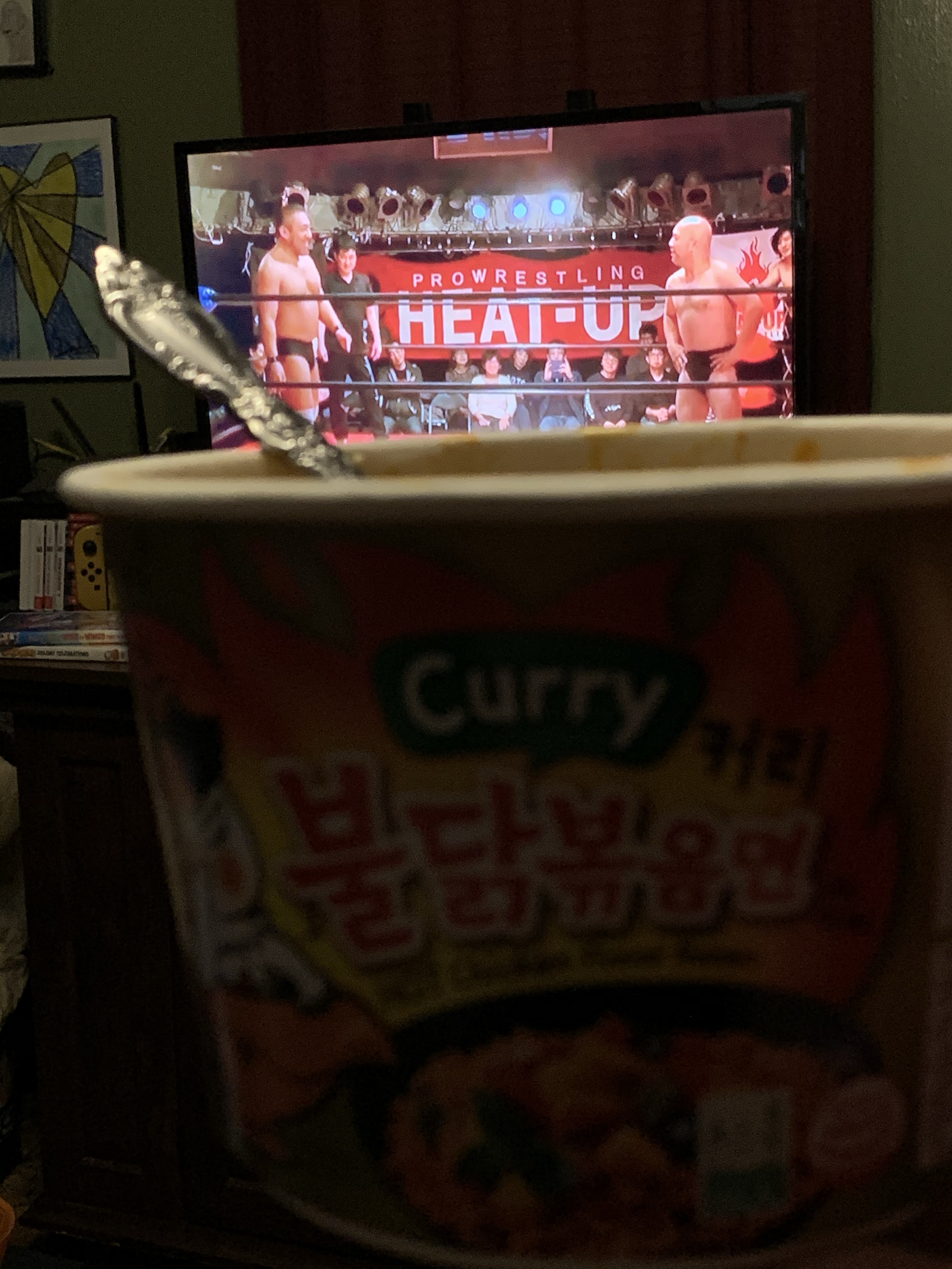 Oh good, a tag match when there are corners I can’t see. Yuji is Shorts. Keizo is Tokyo Taz because of his towel work. And I’m not sure which is which but the opposing team is Al O’Pecia and Pants. Taz cuts a promo. The families in the front row laugh. Everyone claps along with his chant. Taz towels away evil spirits or something. Shorts vs Pants start off. I can’t see either of their partners. There’s an exchange, followed by polite claps. Tag. Taz and Al are in. Taz suckers Al in. Kick and headlock. Taz won’t shut up. Everyone to the outside. I see nothing. Taz gets beat up in every corner. Pants can’t slam Taz?! Taz easily slams Pants. Taz’s partner is in. Taz no sells Pants’s offense. Pants with a spinning heel kick to Taz’s nipple. Al in with a fury. Al with a headscissors and head lock take over on both opponents. Now into the blind corner. Al with a knee off one of the ropes. Which one? Don’t know. Blind corner. Yuji is in to punish Al. Pants and Al both lock on submissions against Shorts and Taz. Sloppy neck breaker by Pants. Taz assists with a swinging neck breaker. Shorts pins Pants.