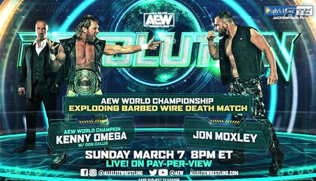Kenny Omega (AEW World champion) (with Don Callis) vs. Jon Moxley in an Exploding Barbed Wire match.