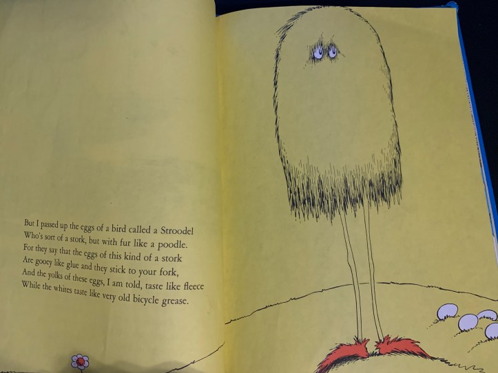 Let’s return to the recently pulled Dr Seuss book, Scrambled Eggs Super.