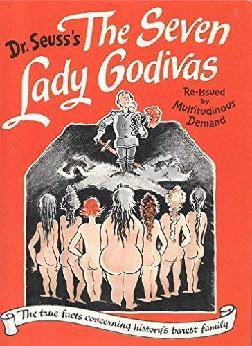In 1939 Seuss published The Seven Lady Godivas. See, there wasn’t one Lady Godiva. There were seven ladies in the family. All naked. And they were all betrothed as well. One to each of the seven Peeping brothers. They were clothed. There’s a lot going on in this book.