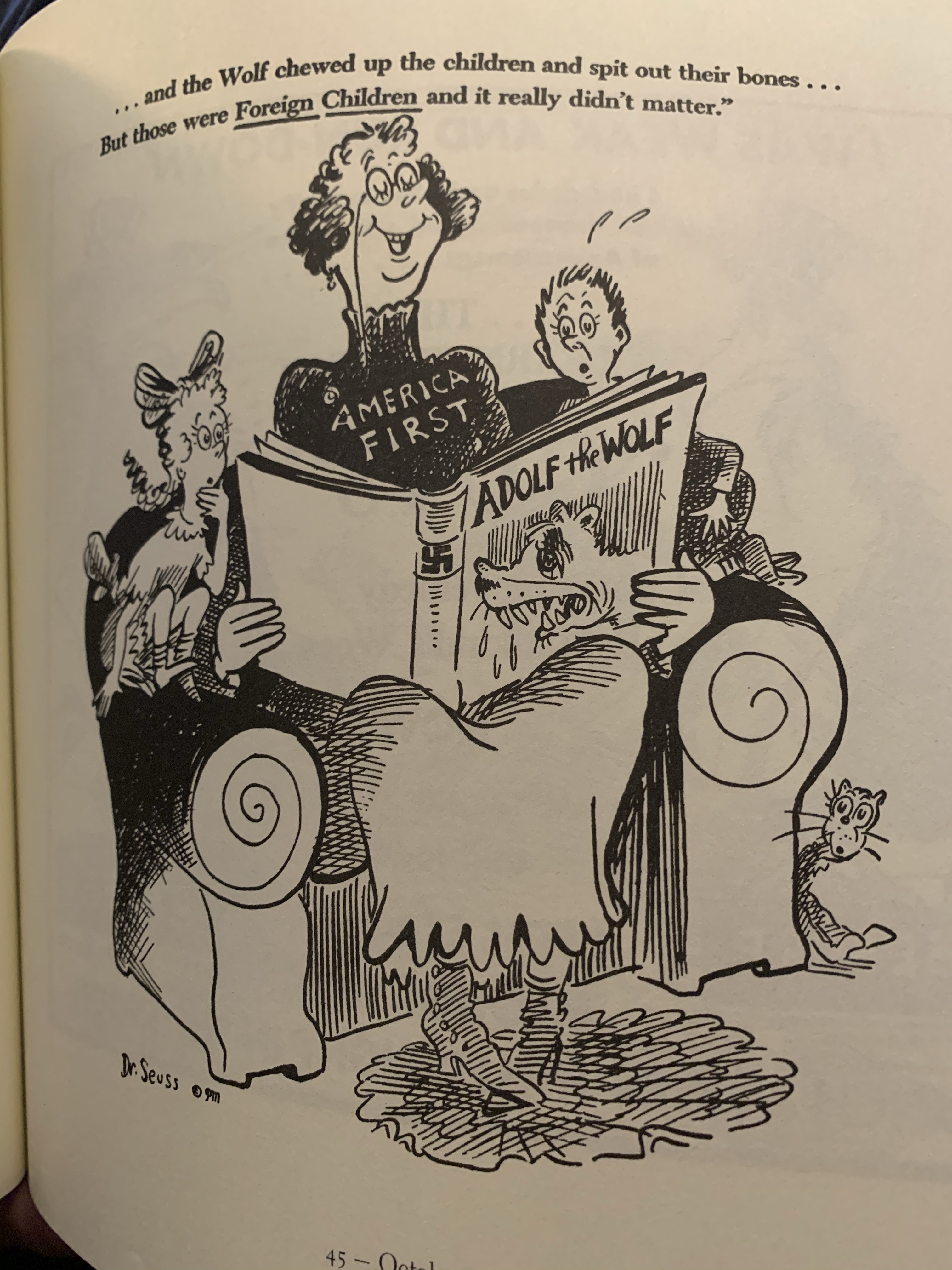 (Cartoons shows under fair use for review. All credit to the book and the Dr Seuss Collection, University of California, San Diego.)