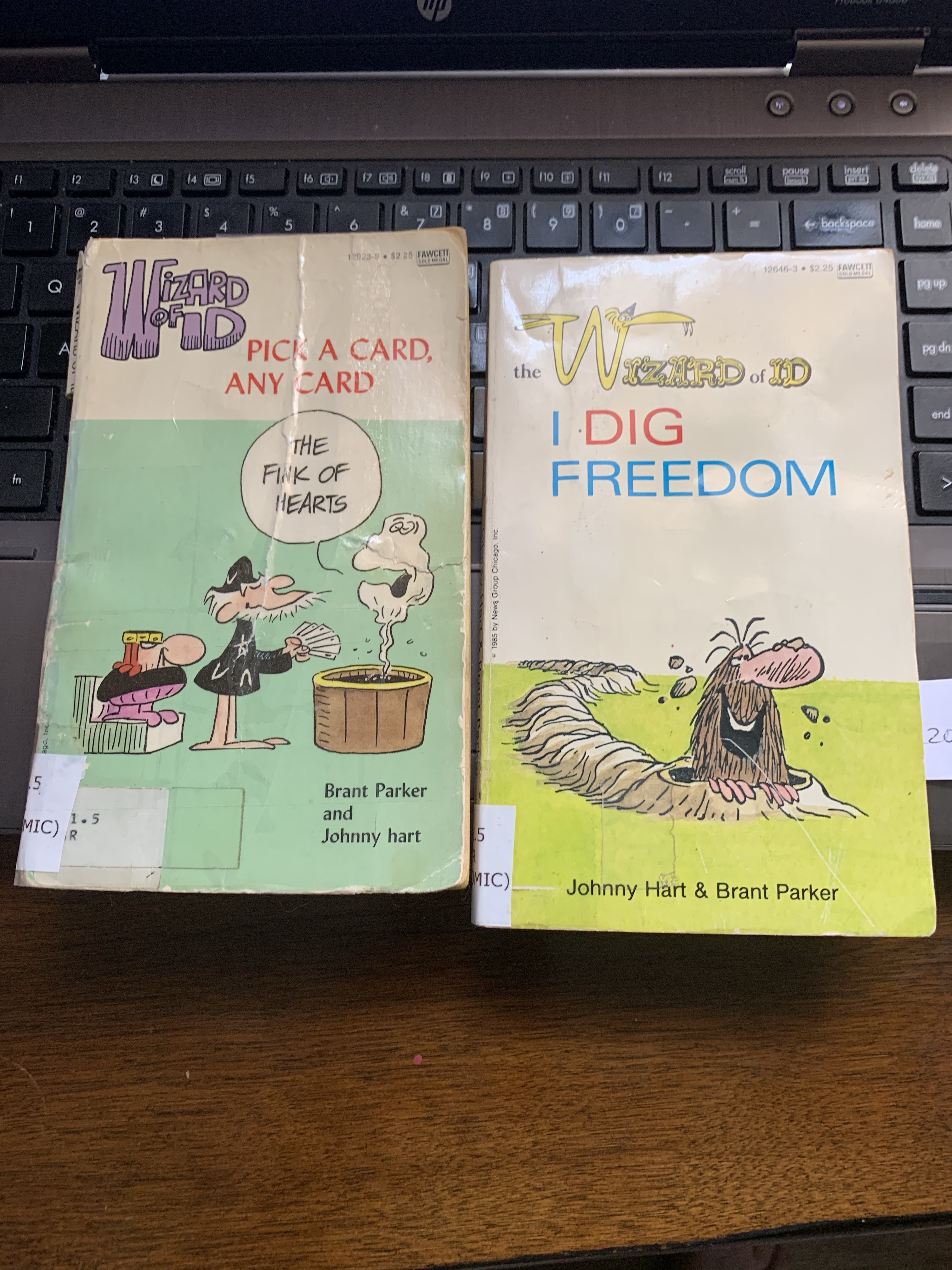 That’s right, two Wizard of Id books! Arguably more Wizard of Id content than anyone else has blogged about in 2021. Recently I read two Wizard of Id collections: I Dig Freedom (1977, Fawcett) and Pick a Card, Any Card (1978, Fawcett). Wizard of Id is from Johnny Hart and Brant Parker.