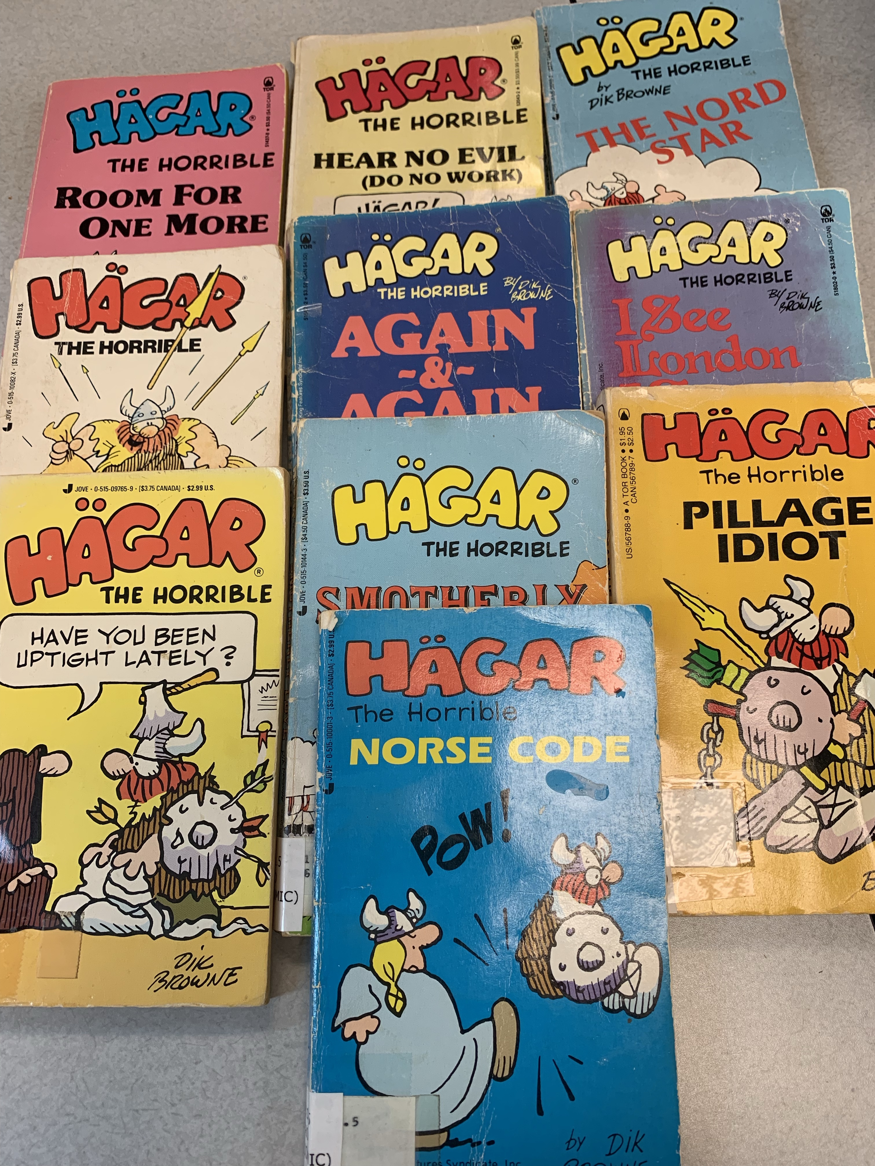 Hagar the Horrible is created by Dik Browne. A couple jokes are included for review purposes but all credit to Dik Browne and King Features Syndicate, Inc.