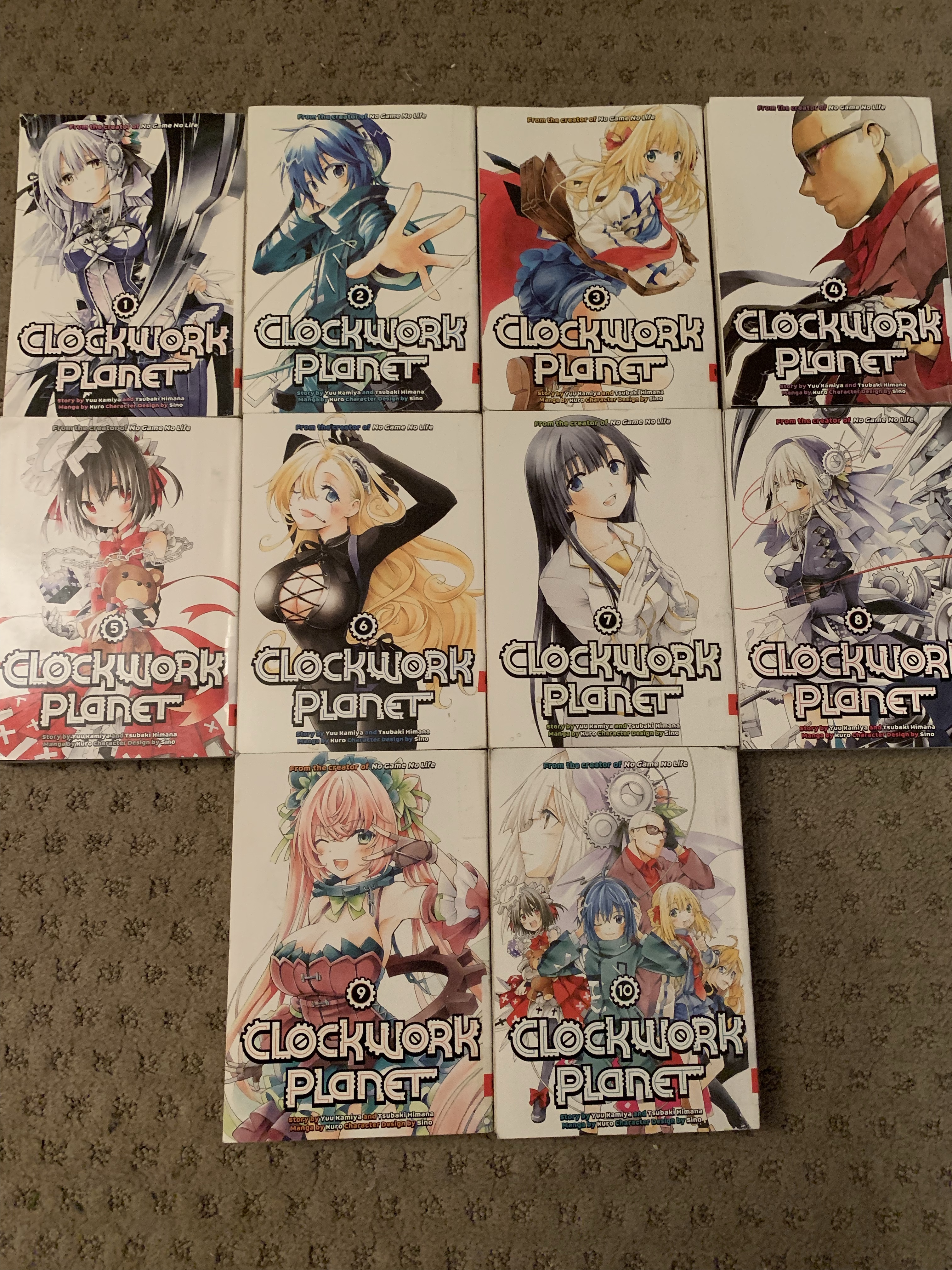 Reviewing volumes 1-10 of the Clockwork Planet manga (the entire series). Story by Yuu Kamiya and Tsubaki Himana. Manga by Kuro. Character design by Sino. Published by Kodansha Comics.