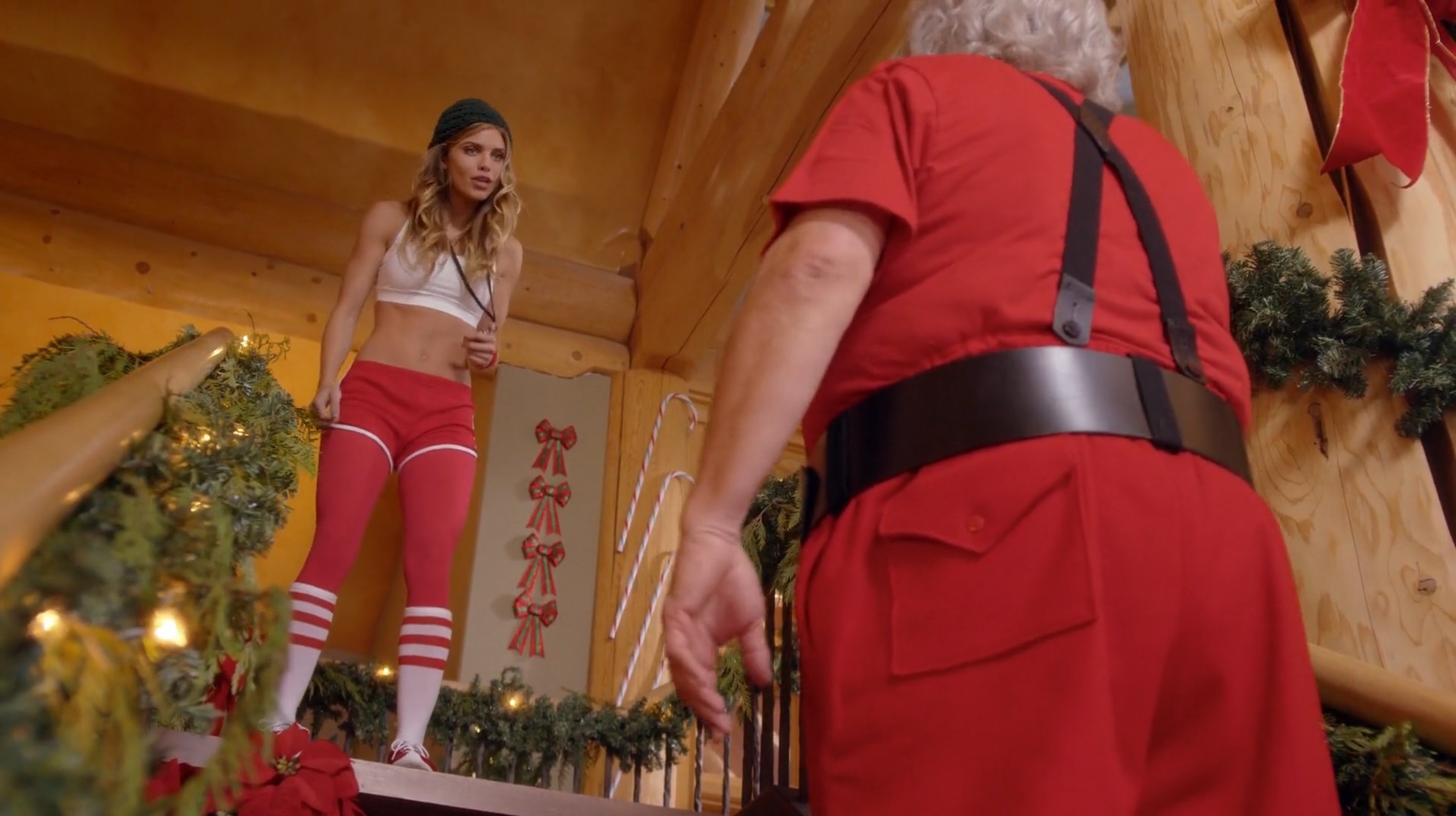 Meanwhile, Santa’s Little Helper has retired and Santa needs to find a replacement. This is the Ho Ho Ho position, which I’m guessing is meant as a riff on CEO or CFO. Santa’s personal trainer and overall elf of all trades, Billie (AnnaLynne McCord) is helping Santa get into Christmas shape and listening to his concerns over filling the SLH HoHoHo position.