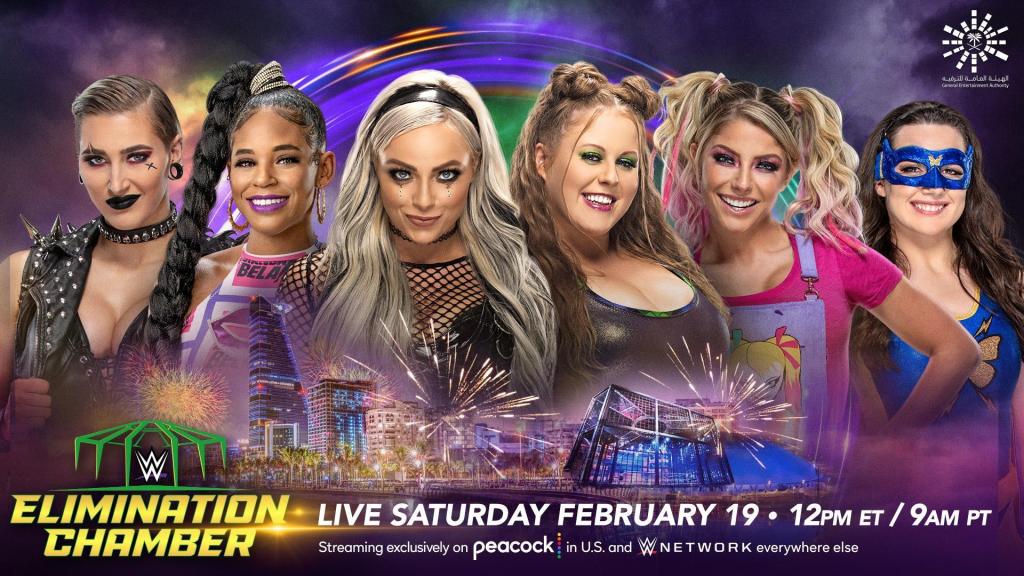 Elimination Chamber match: Liv Morgan vs. Rhea Ripley vs. Bianca Belair vs. Doudrop vs. Nikki A.S.H. vs. Alexa Bliss.