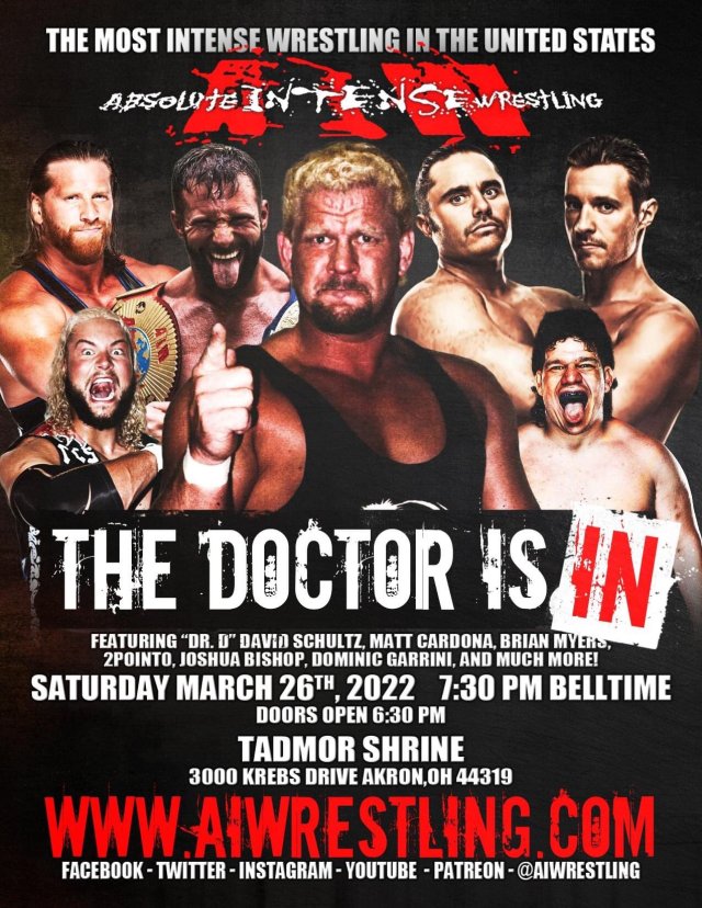 Each and every week without a major wrestling pay per view, the fine hosts for the At Odds with Wrestling podcast assign another wrestling show as homework. This week’s selection is the latest event from the fine folks at AIW, the Doctor is In. This event can be watched in the comfort of your home through a subscription to IWTV. Just $10 a month. You’ve spent more on worse.