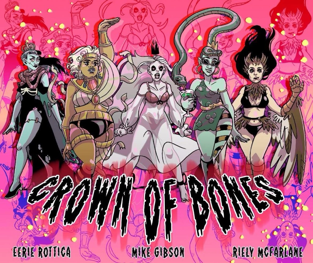 Crown of Bones is a sexy burlesque horror that is one of the most absurd yet most fun comics I’ve read in awhile. Mike writes the comic off a story concept from Eerie Rottica with art by Riley McFarlane. Six undead Queens (a word that must be capitalized) rule the Creature Realm but when a long defeated enemy returns it is up to all six to form the only weapon that can destroy it.